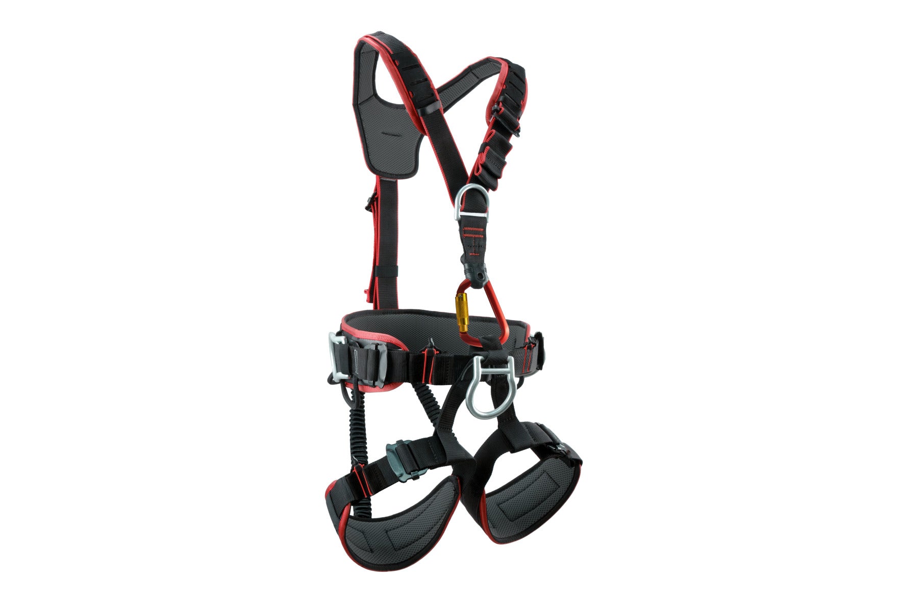 Auf den höchsten Sicherheitsstandard gefertigt, vollvernäht, mit 4 Einhängepunkten vorne, hinten und seitlich mittels Stahlkarabiner, verstellbar um bequemes Arbeiten zu garantieren, extra breite Bein- und Rückenschlaufen, inkl. Karabiner mit 3-Wege-Verschluss.