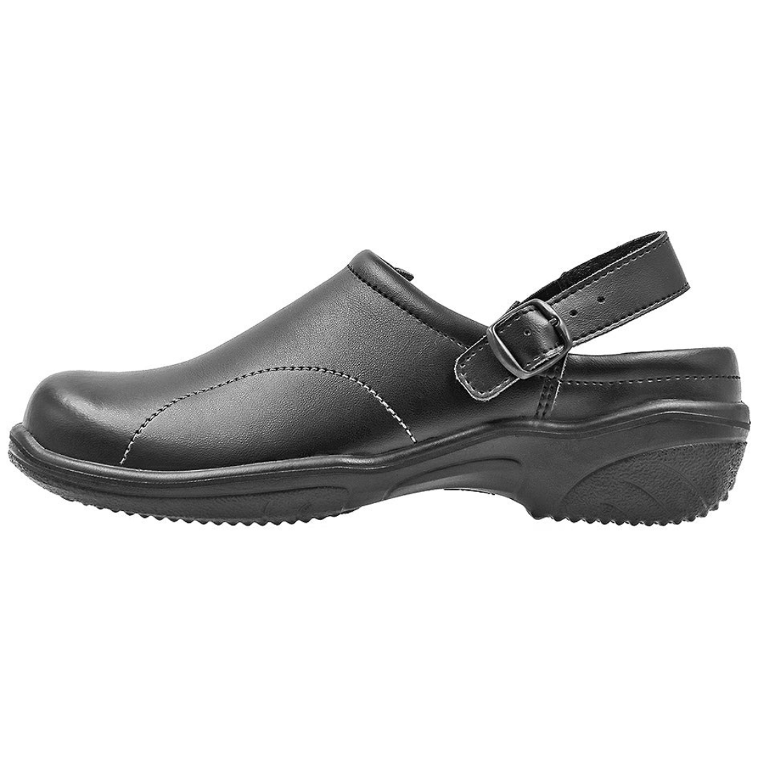 Clog mit dreh- und verstellbarem Fersenriemen. Dehngummis an Innenrist und Fersenriemen. Das Obermaterial ist pflegeleichtes PU-Leder. Die breiten XL-Leisten bieten dem Fuß reichlich Platz. Atmungsaktives Futter. Die Sievi Comfort-Einlegesohle und die elastische FlexStep®-Sohle schützen Fuß und Rückgrat vor Stößen und übermäßiger Beanspruchung. Das Modell ist EN ISO-zertifiziert und ESD-zugelassen.