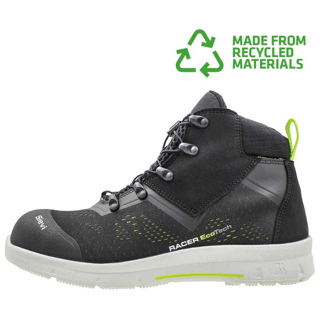 Racer EcoTech H ist eine besonders ökologische Stiefelette mit maximalem Recyclatanteil. Der Sicherheitsschuh hat eine Alu-Zehenkappe, einen Textil-Nageldurchtrittschutz und ein robustes, atmungsaktives Obermaterial aus Textilgewebe. Mit Sievi FastLace®-Verschluss für schnelles, bequemes An- und Ausziehen. Die weiche Sievi Green Comfort-Einlegesohle erhöht den Tragekomfort.